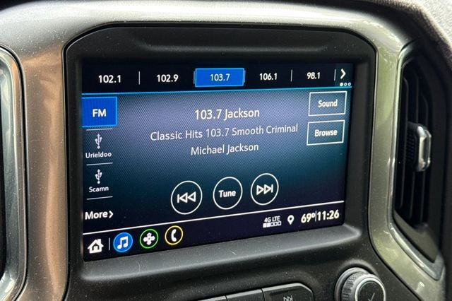 PERSONAL LEASE, SINGLE OWNER, BLINDSPOT MONITORS, Bluetooth®, APPLE CARPLAY & ANDROID AUTO, BACKUP CAMERA, KEYLESS START & ENTRY, REMOTE ENGINE START, ALLOY WHEELS, HEATED SEATS, Silverado 1500 LT Z71 OFF ROAD, 4D Crew Cab, EcoTec3 5.3L V8, 8-Speed Automatic, 4WD, Silver Ice Metallic, Black Cloth.