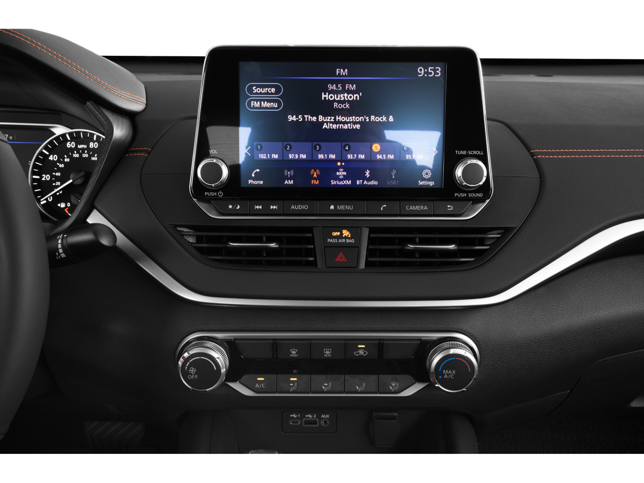 - Radio: AM/FM Audio System -inc: 6 speakers, aux input, NissanConnect featuring Apple CarPlay, Android Auto, 8" color touch-screen display, 1 front illuminated USB port (type-C) for compatible devices, SiriusXM radio w/advanced audio features, Bluetooth® hands-free phone system, streaming audio via Bluetooth®, hands-free text messaging assistant, 2 rear illuminated USB ports (type-A, 1 type-C) for compatible devices, Siri Eyes Free and Google Assistant voice recognition