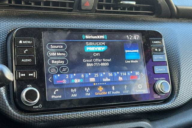 - Radio: AM/FM Audio System -inc: 8" color touchscreen display w/6 speakers, Bluetooth® hands-free phone system, streaming audio via Bluetooth®, Siri eyes free, audio and Bluetooth® steering wheel switches, 3 USB ports (1x front charge and data and 2x rear charge only), type C USB (data and charge) (front), NissanConnect featuring Apple CarPlay, Android Auto, SiriusXM satellite radio w/advanced audio features and hands-free text messaging assistant