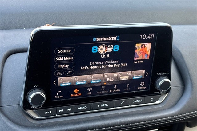 - Radio: AM/FM NissanConnect -inc: 6 speakers plus 2 tweeters, Apple CarPlay, Android Auto, 8" color touch screen display, Bluetooth®, 2 front USB type-C, Wi-Fi hotspot and NissanConnect Services powered by SiriusXM