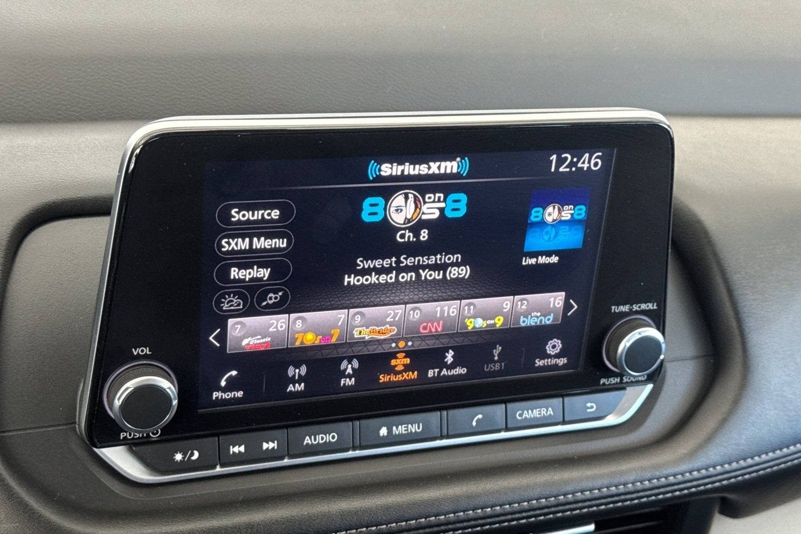 - Radio: AM/FM NissanConnect -inc: 6 speakers plus 2 tweeters, Apple CarPlay, Android Auto, 8" color touch screen display, Bluetooth®, 2 front USB type-C, Wi-Fi hotspot and NissanConnect Services powered by SiriusXM